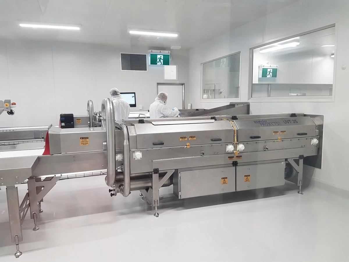 Powder Projects UV 25 ultra violet light steriliser tunnel is specifically designed for the irradiation of 25kg plastic bags of various powders used in the production of Infant Formula.
